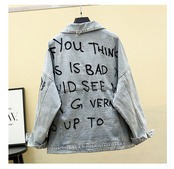2022ルーズレター刺繡レディースデニムジャケット原宿ラージサイズデニムコートオーバーサイズターンダウンカラージーンズジャケット697 刺繍 大きめサイズ かわいい Abe24616618099