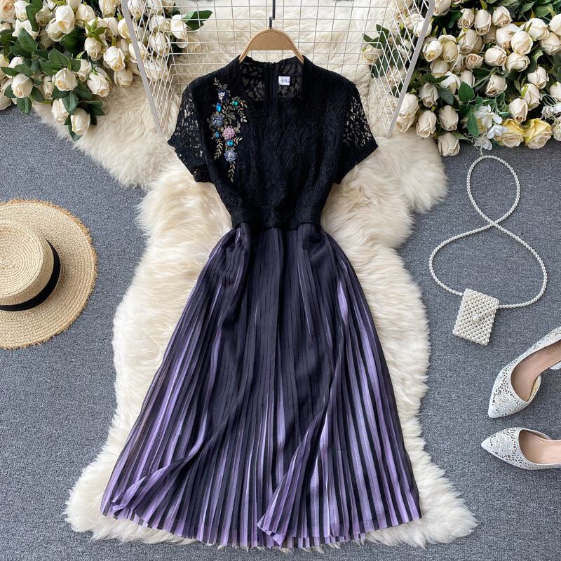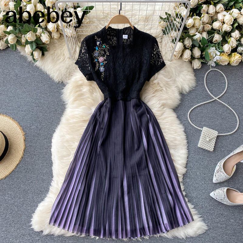 レトロ刺繡フローラルドレスレディースAラインドレス2022春のストリートウェアミディドレス 刺繍 スプリング 春物 花柄 Abe53122830994