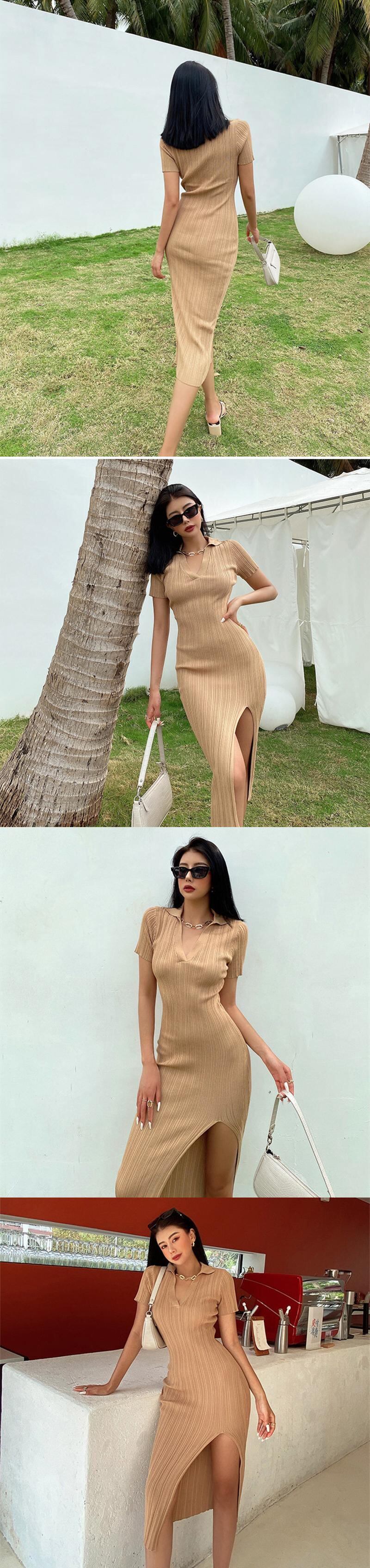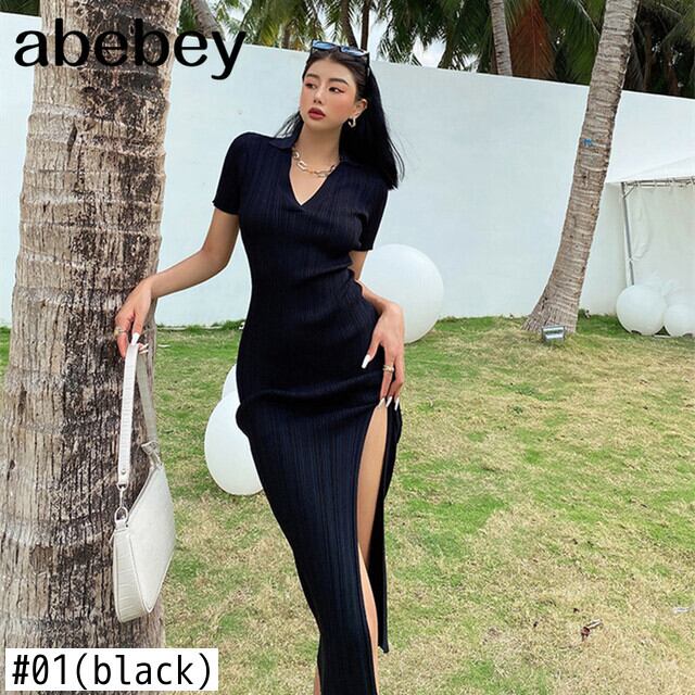 サマードレス2022ホワイトブラックVネックタイトニットドレススリット入りY2k90sプラスサイズ半袖ボディコンミディレディースドレス ショート ハーフスリーブ 大きめサイズ 夏物 Abe8011005451