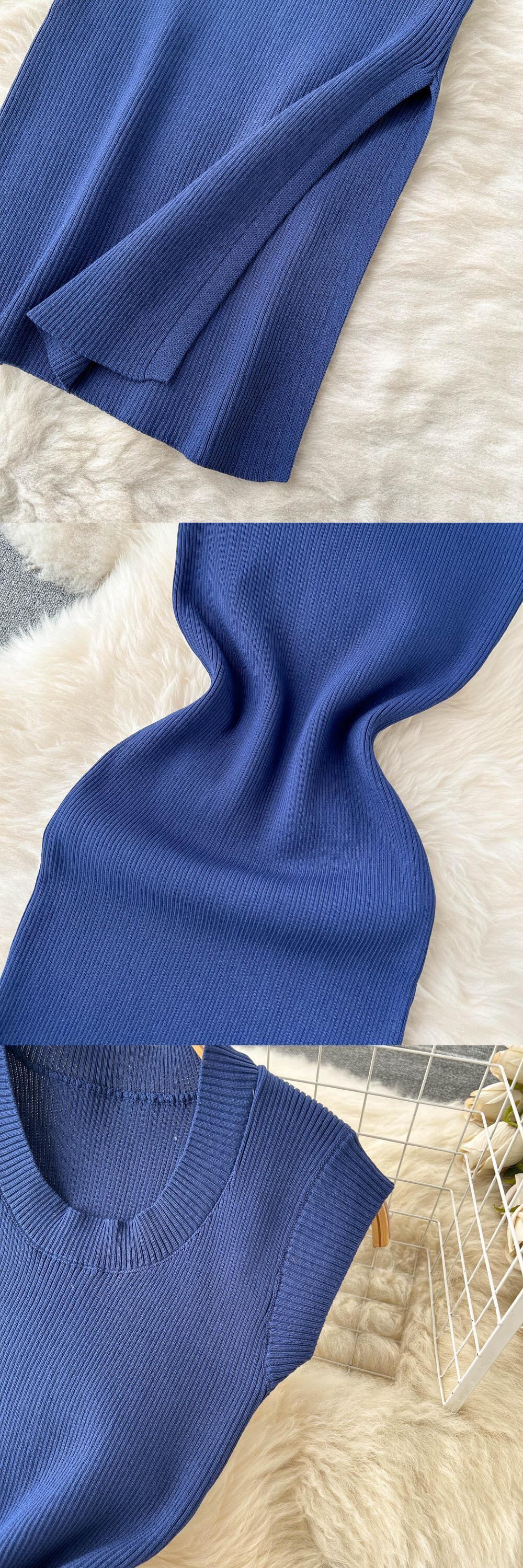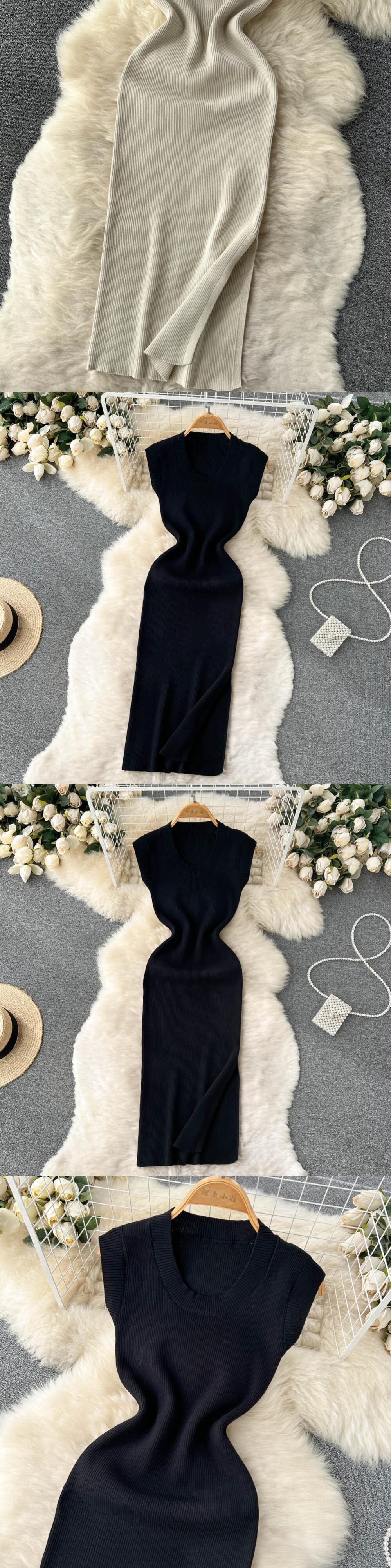 2022年春夏ドレスニットソリッドOネックセクシーボディコンミディドレス女性ストレッチVestidosノースリーブ スプリング 春物 サマー 夏物 ソリッドカラー Abe99948534999