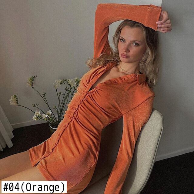 2022年春のシャツドレス、シャーリングのセクシーなターンダウンカラー長袖ミニドレスストリートウェアドレス ロング スプリング 春物 Abe23111745489
