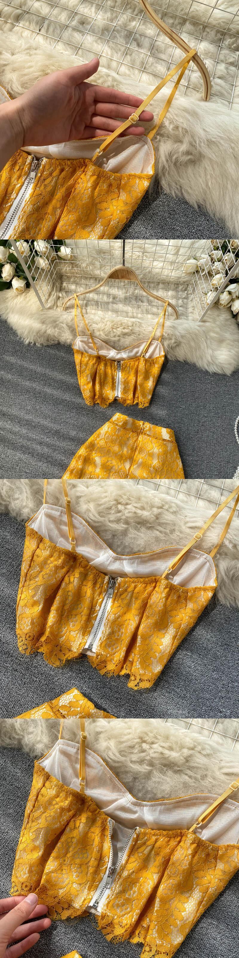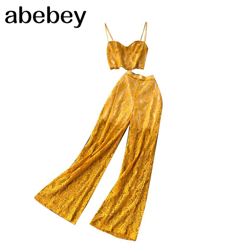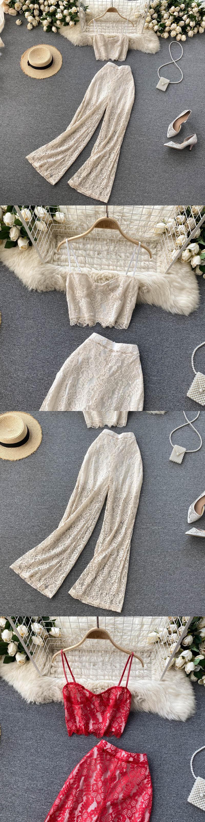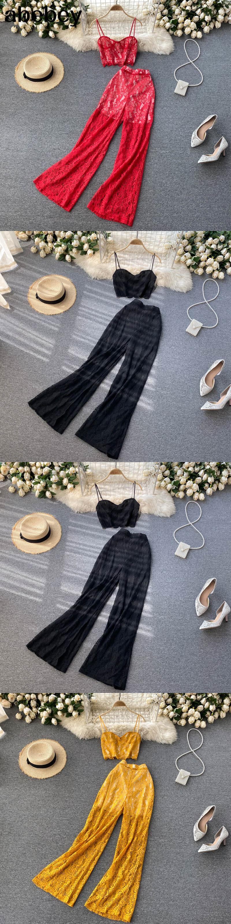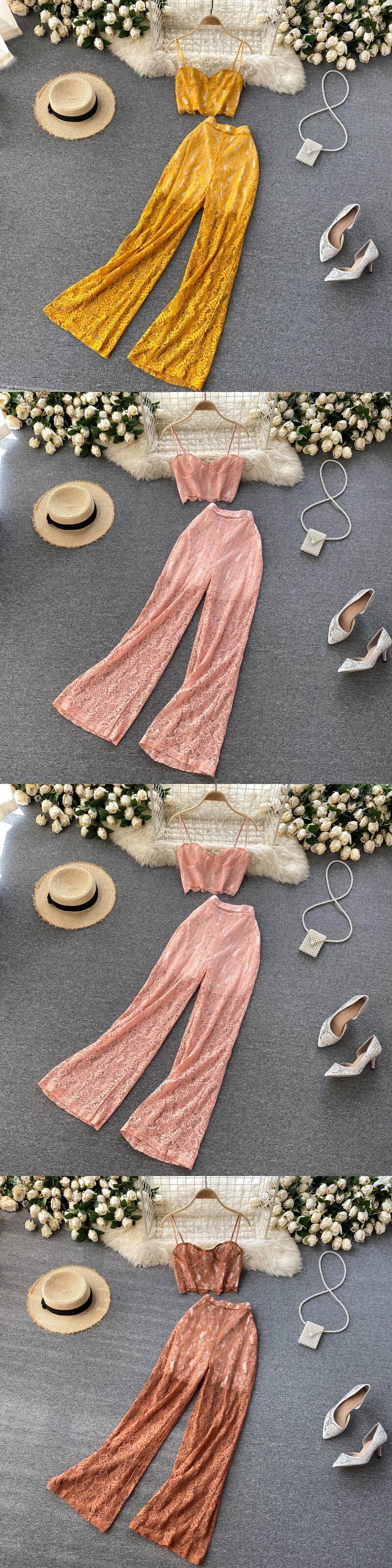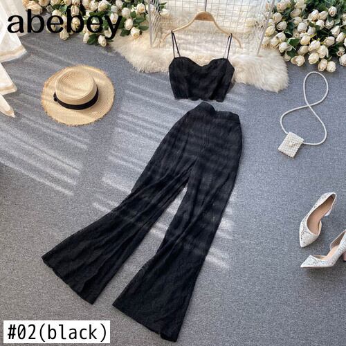 女性2022年夏休暇ホローオフショルダーストラップショートトップス+ホローウエストセクシーワイドレッグパンツ2点セット サマー 夏物 ワイドパンツ Abe64229838779