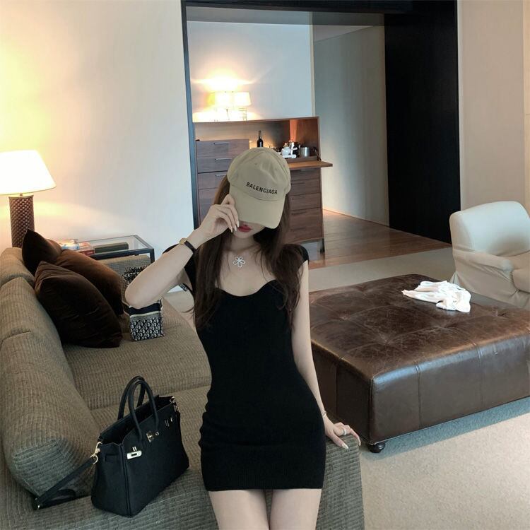 夏ニットバッグヒップショルダーフレンチセクシーブルードレス女性OLノースリーブオフィスレディ サマー 夏物 会社 学校 通勤や通学にも Abe43119557722