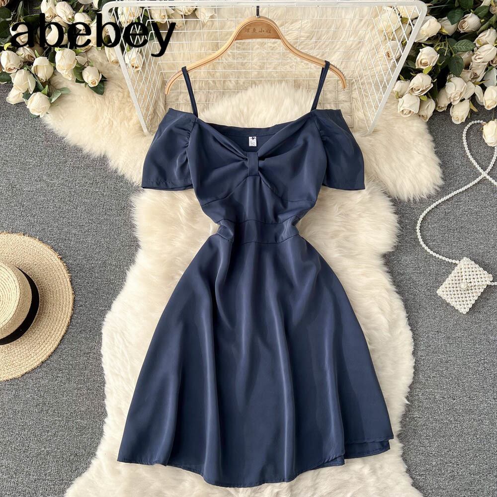 セクシーなオフショルダーストラップドレス女性半袖オフィスレディドレス夏のAラインバケーションビーチサンドレス ショート ハーフスリーブ サマー 夏物 会社 学校 通勤や通学にも Abe40294695956