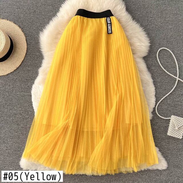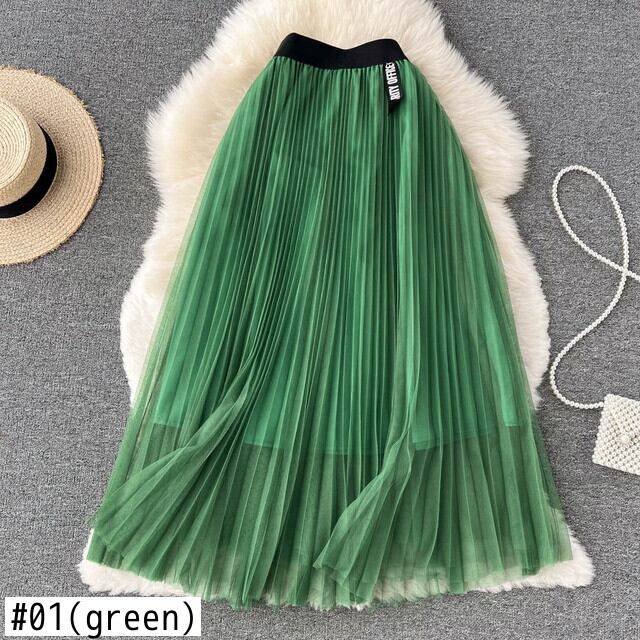 女性メッシュスカートウエストルーズソリッドAラインスカート2022サマーストリートウェアロングプリーツスカート 夏物 ソリッドカラー Abe25950652334