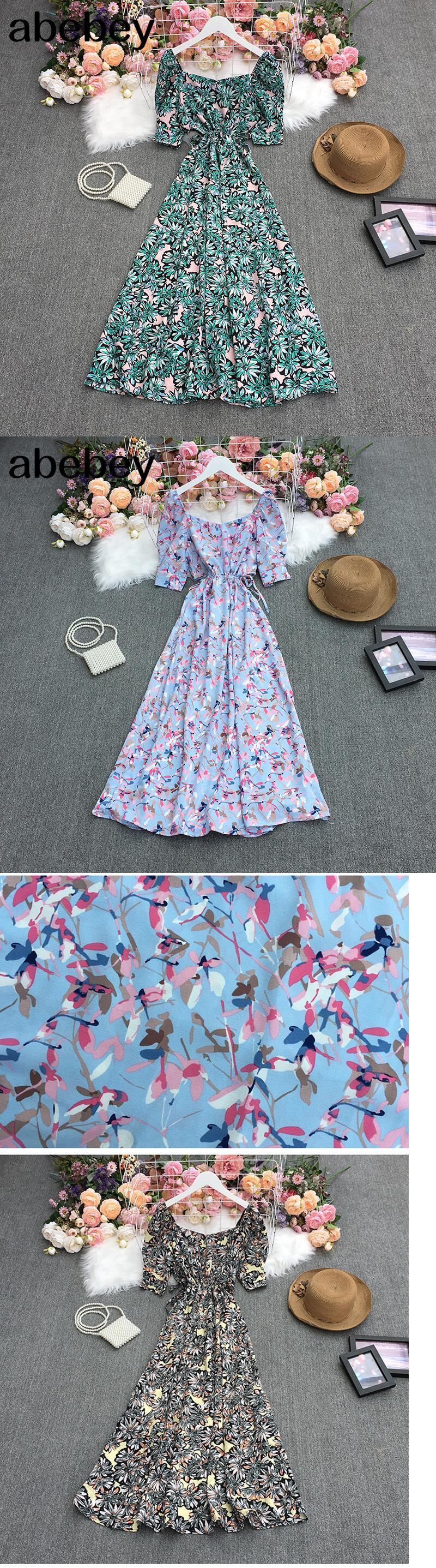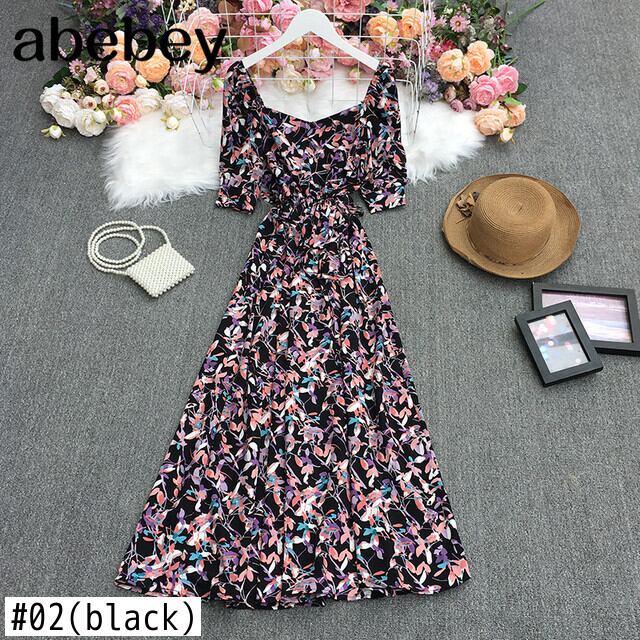 2022年夏オールマッチスクエアカラーパフスリーブドレス巾着レースアップウエストスリムドレス サマー 夏物 スクウェア Abe57130538822
