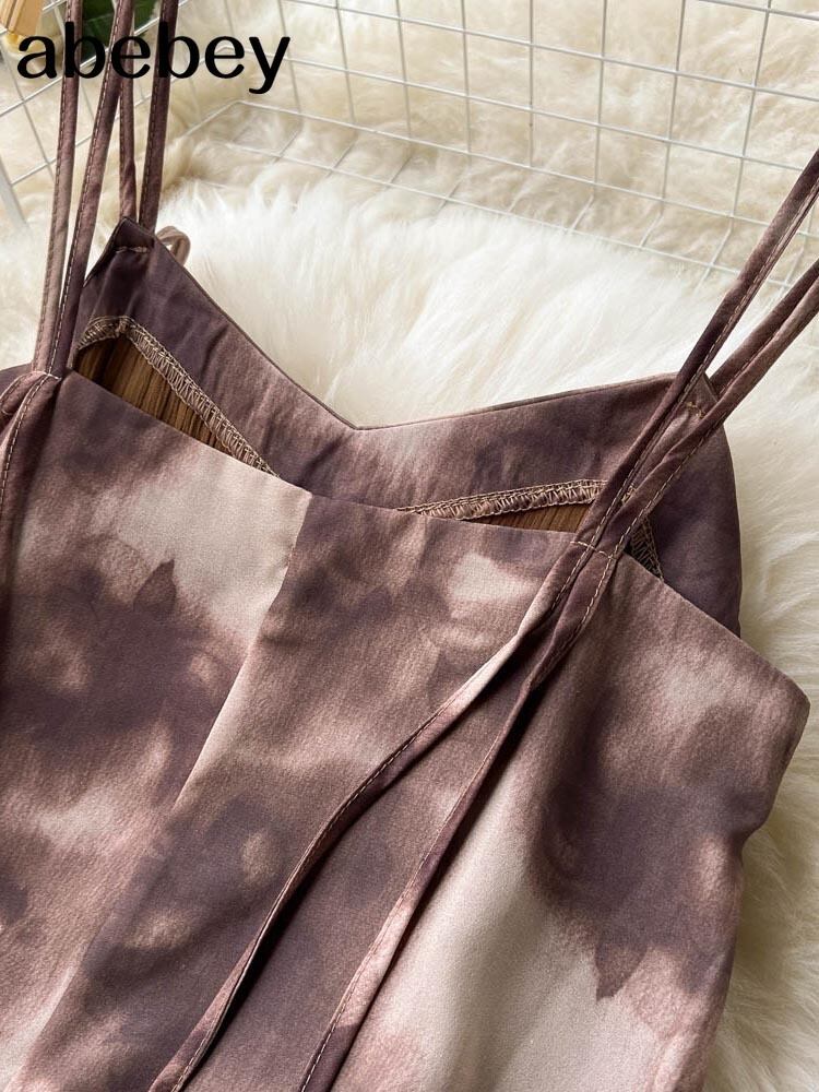 女性プリントストラップドレススプライスフローラルVネックバックレスAラインドレス夏セクシーオフショルダーミディロングパーティードレス サマー 夏物 花柄 Abe97582302058
