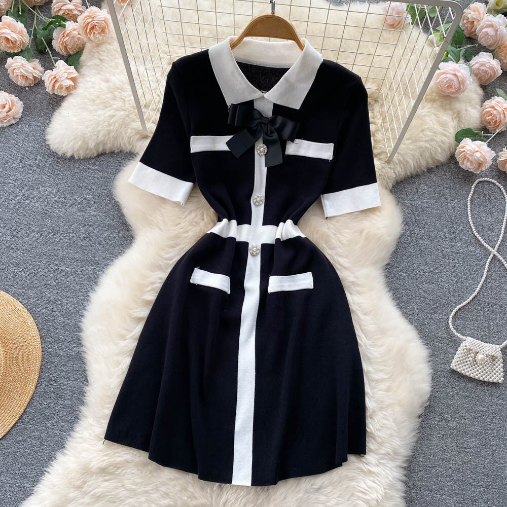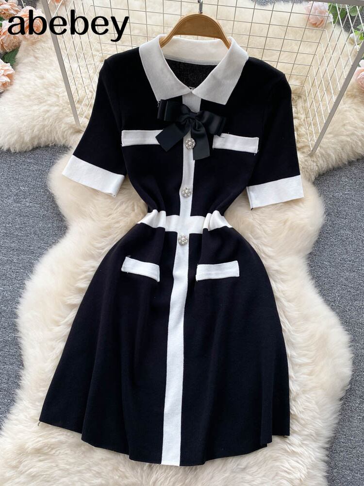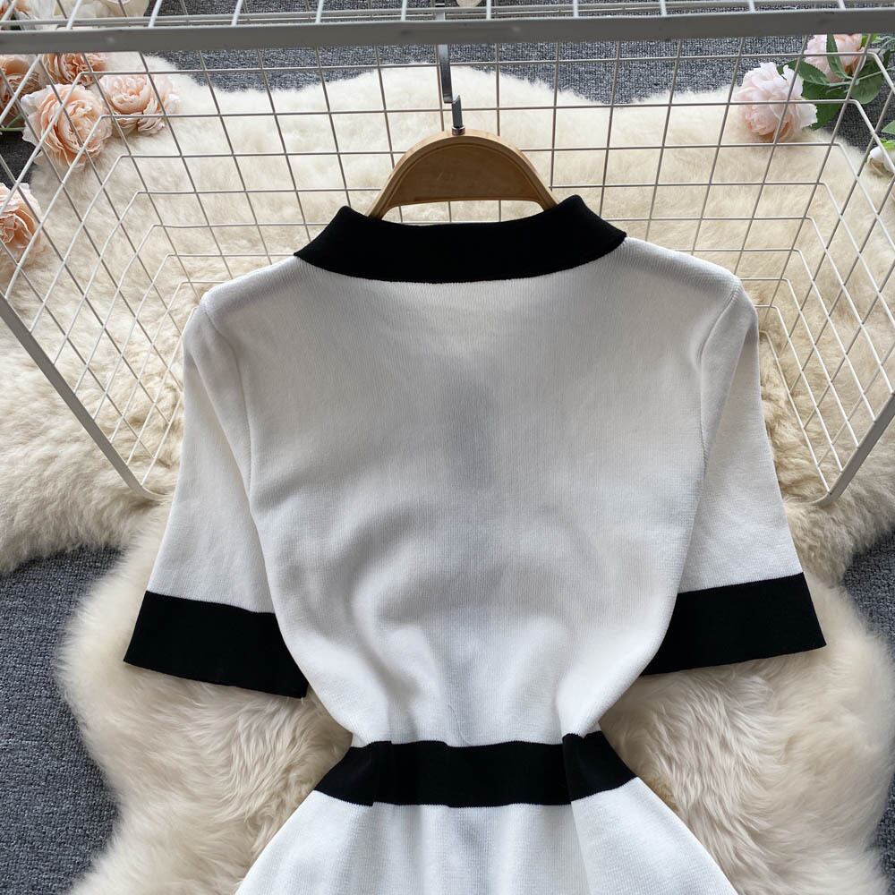 ニット半袖ボディコンミディドレス女性夏セクシー半袖ストリートウェアパトワークストレッチレディドレス ショート ハーフスリーブ サマー 夏物 Abe35485108731