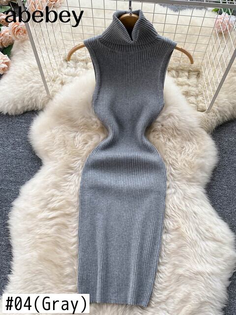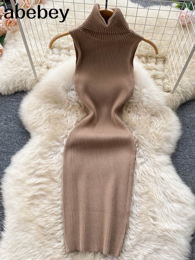 女性サマーニットドレス2022タートルネックネックストリートウェアスリムミディショートサンドレス伸縮性ウエストセクシーボディコンドレス エラスティック 夏物 Abe40506100020