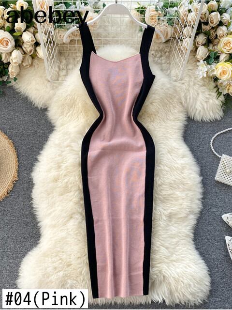夏の女性の編み物シースレタータンクドレスボディコンニットキャミソールノースリーブパッチワークミニドレス女性 サマー 夏物 Abe17046378506