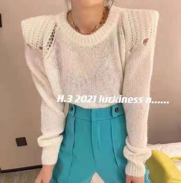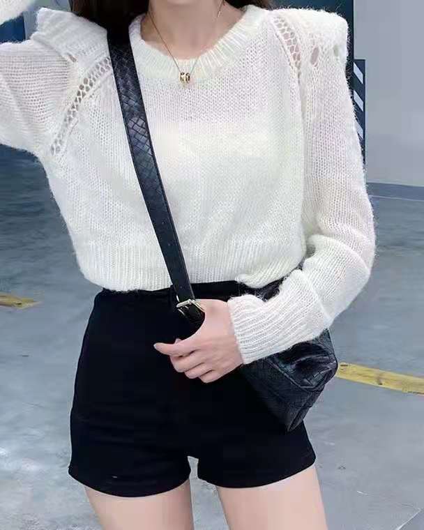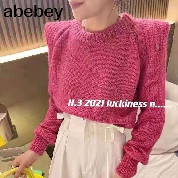 中空ショートニットセーター女性の2022年秋新バージョンルーズワイルドピュアカラーラウンドネックボトミングセータートレンド オータム 秋物 Oネック Abe94195983219