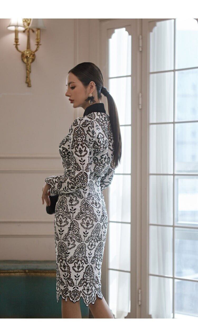 2020ツーピース衣装女性刺繡長袖スリムトップとヒップスカートセットをくり抜く ロング 刺繍 Rhc4836866053