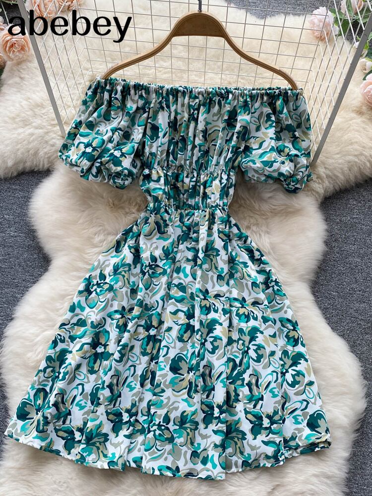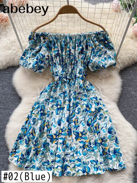 ボヘミアンフローラルシフォンミディドレス女性セクシースラッシュネックフリル半袖Aラインプリントバケーションビーチ ショート ハーフスリーブ 花柄 Abe13959966470
