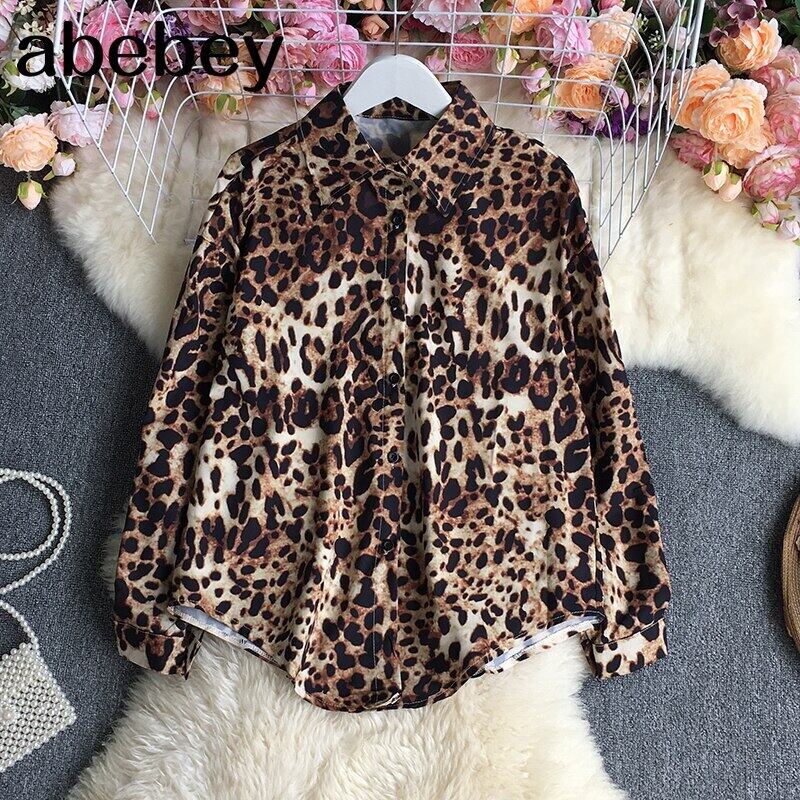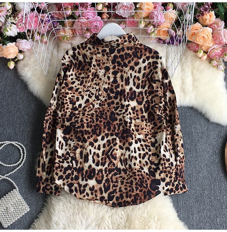 2022年春秋ヴィンテージターンダウンカラー長袖シャツシングルブレストヒョウ柄ルーズカジュアルシャツトップ ロング スプリング 春物 オータム 秋物 ビンテージ Abe56080694897
