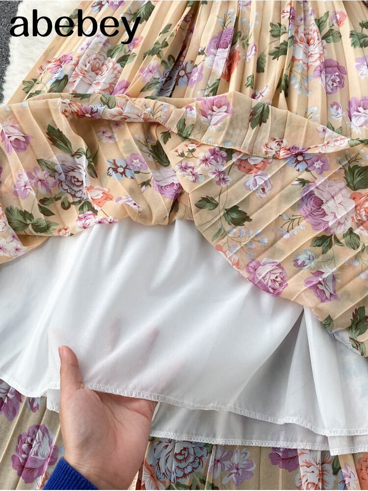 サマーフローラルOネックパフスリーブマキシドレスウーマンローブセクシーレースアップサイドスプリットシックミッドカーフエステティックドレス 夏物 花柄 Abe28318550575