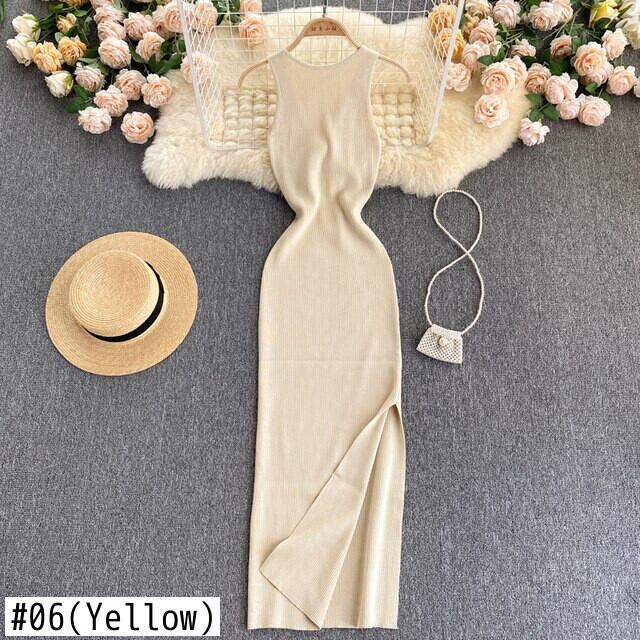 女性のセクシーな中空ニットドレスノースリーブVネックスリムパーティークラブドレスサマーボディコンペンシルドレス 夏物 Abe27595922230
