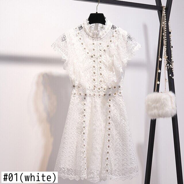 2020年夏の女性のセクシーな刺繡中空アウトホワイトレースドレスウエスト半袖ドレスパーティーVestidos ショート ハーフスリーブ 刺繍 サマー 夏物 Rhc80216832247