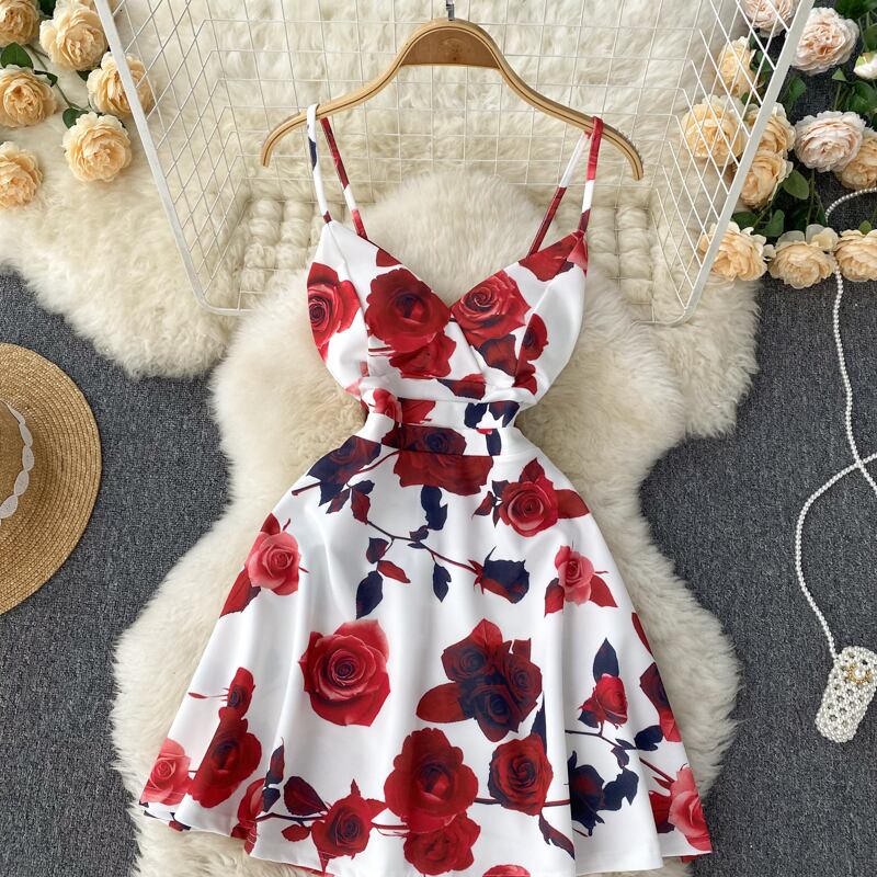 夏のセクシーなミニスウィートドレス女性花柄ウエストストラップレスドレスバックレスWasitパーティードレス 大人ガーリー キュート カジュアル サマー 夏物 Abe65891191743