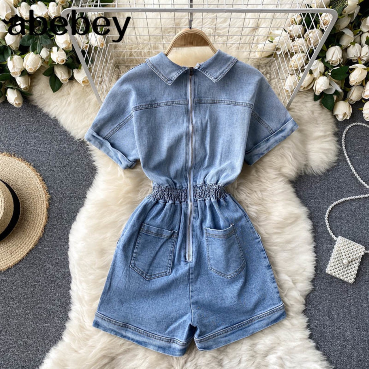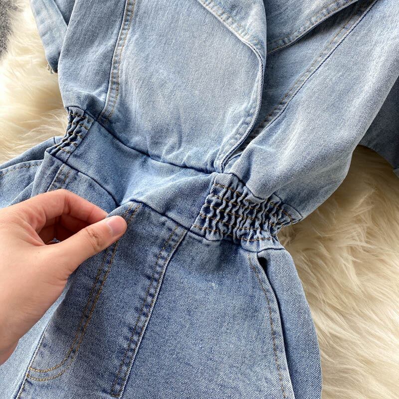 女性デニムロンパースセクシー半袖ソリッドジャンプスーツサマーオフショルダーワイドレッグショートロンパース ハーフスリーブ 夏物 ワイドパンツ ソリッドカラー Abe18268867770