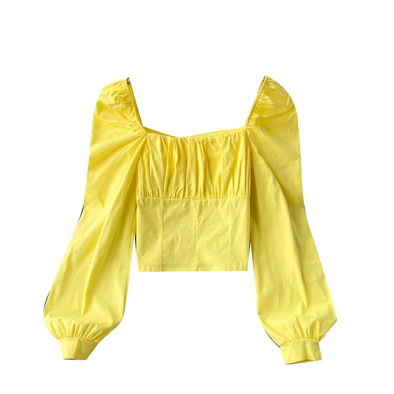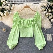女性ブラウス長袖スクエアカラーソリッドスリムオフィストップス秋のストリートウェアショートブラウス ロング オータム 秋物 ソリッドカラー スクウェア 会社 学校 通勤や通学にも Abe16880049809