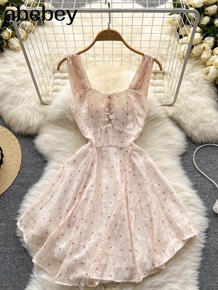 ドレス女性2022ヴィンテージフローラルドレスフリル恋人ネックノースリーブストラップネクタイフリル裾サマービーチドレス 大人ガーリー スウィート キュート カジュアル 夏物 花柄 ビンテージ Abe36695895155