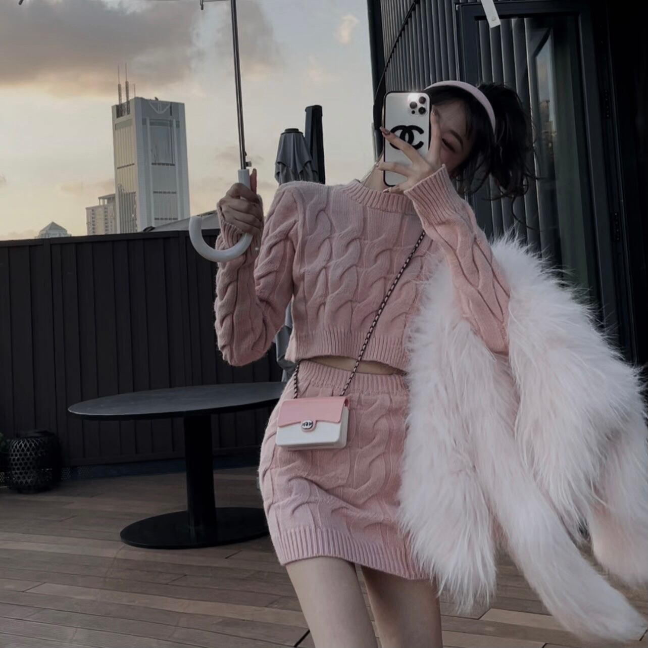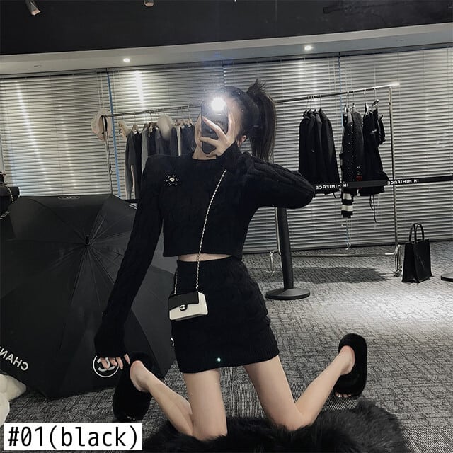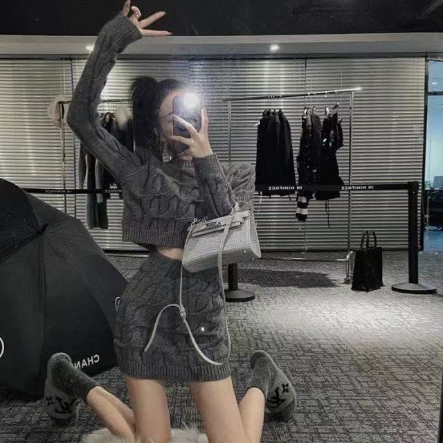 女性の冬のニットセータートップスとスカート秋のスリムクロップトップス女性のセータースカート2ピースセット女性の衣装 オータム 秋物 ウィンター 冬物 Rhc43824391792