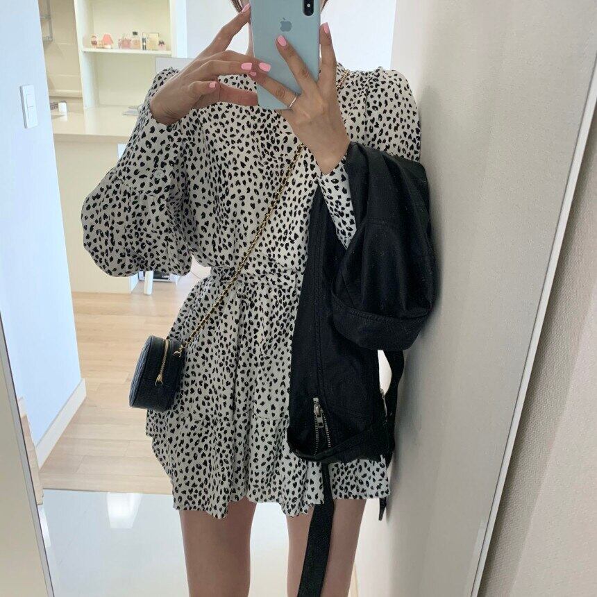 女性のドレスヴィンテージ長袖シックなフリルヒョウプリントウエストドレスルーズVestidos ロング ラッフル ビンテージ Rhc76973516470