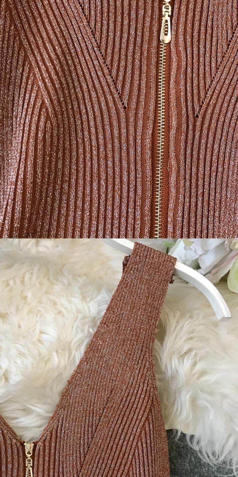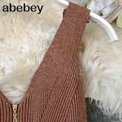 スリムセクシージッパーVネックサマーストライププリントニットミディロングドレスレディースVestidoDeFestaタンククラブパーティーBodyconVestidos 夏物 Abe99740018496