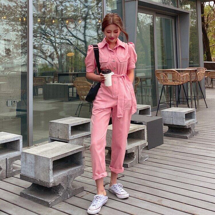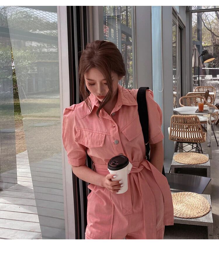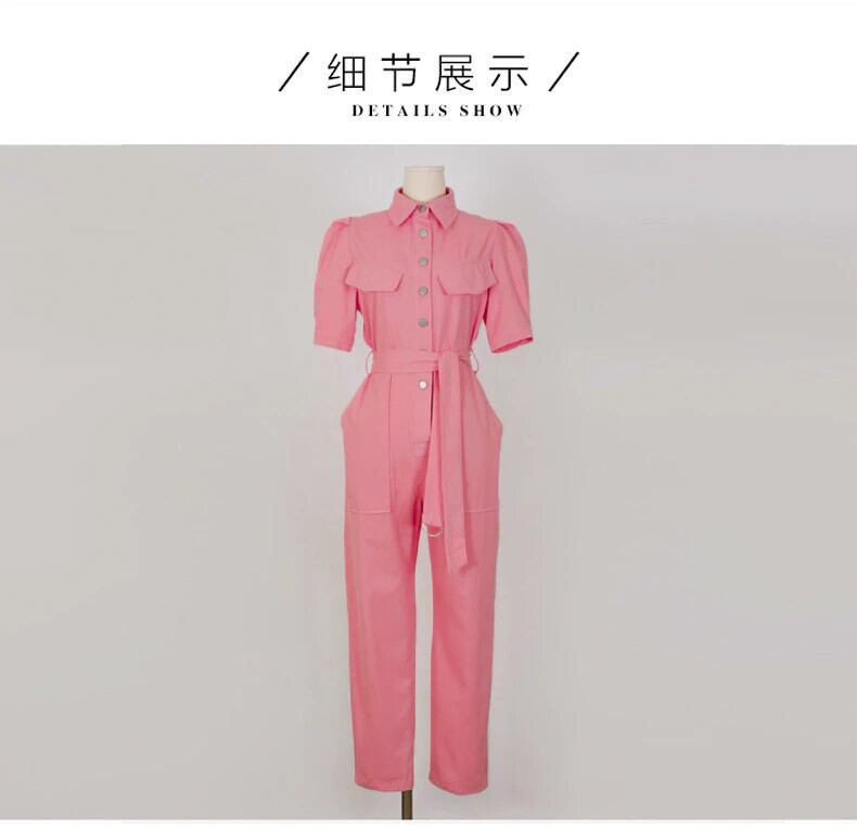 ワークオフィス女性ジャンプスーツ2020夏セクシーオーバーオールルーズソリッドロングプレイスーツレースアップサッシジャンプスーツロンパース サマー 夏物 ソリッドカラー 会社 学校 通勤や通学にも Rhc86928418394