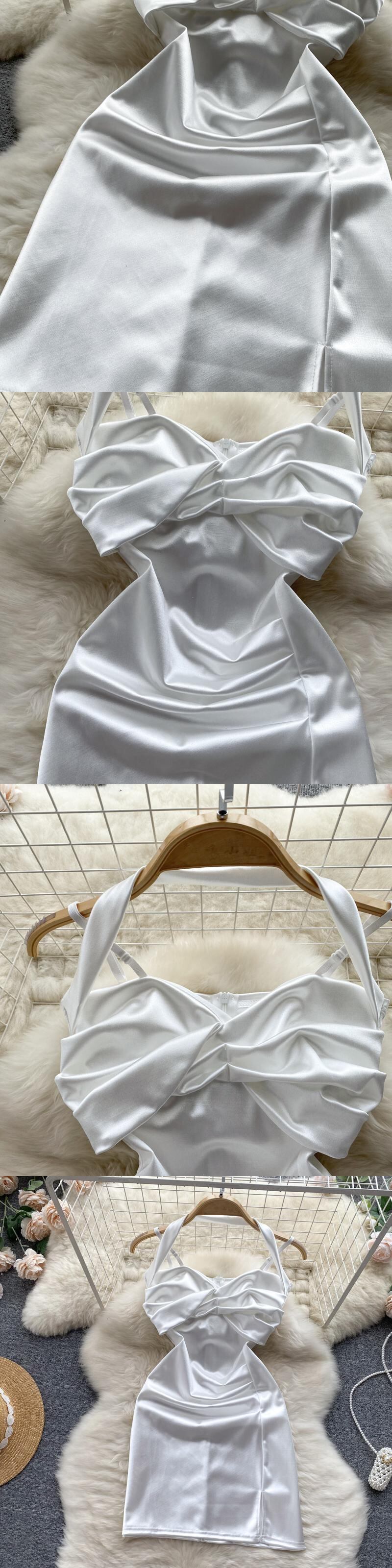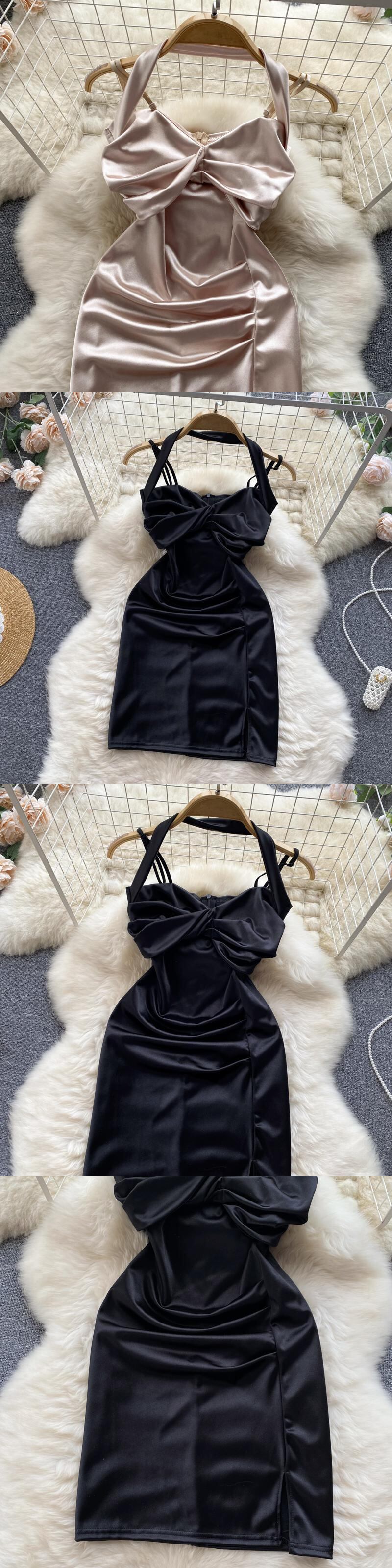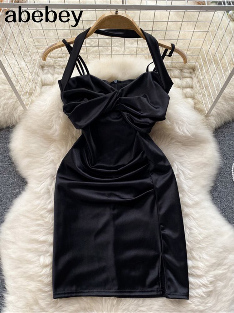 夏の女性セクシーなプレーン無地ホルタードレス背中の開いたノースリーブボディコンサテンパーティークラブミニドレスの衣装 サマー 夏物 ソリッドカラー Abe85352458969