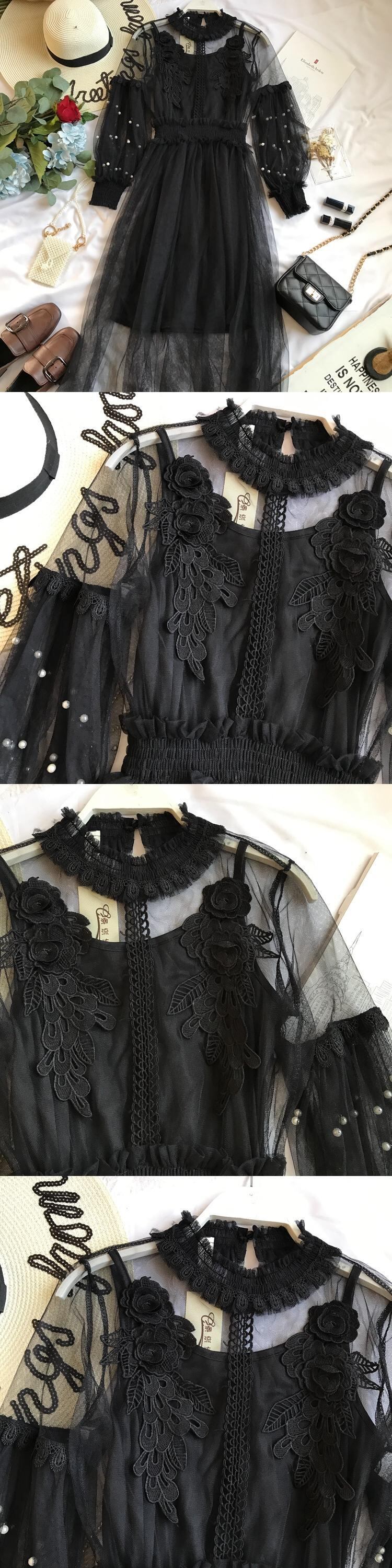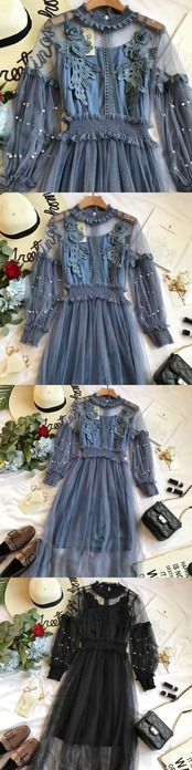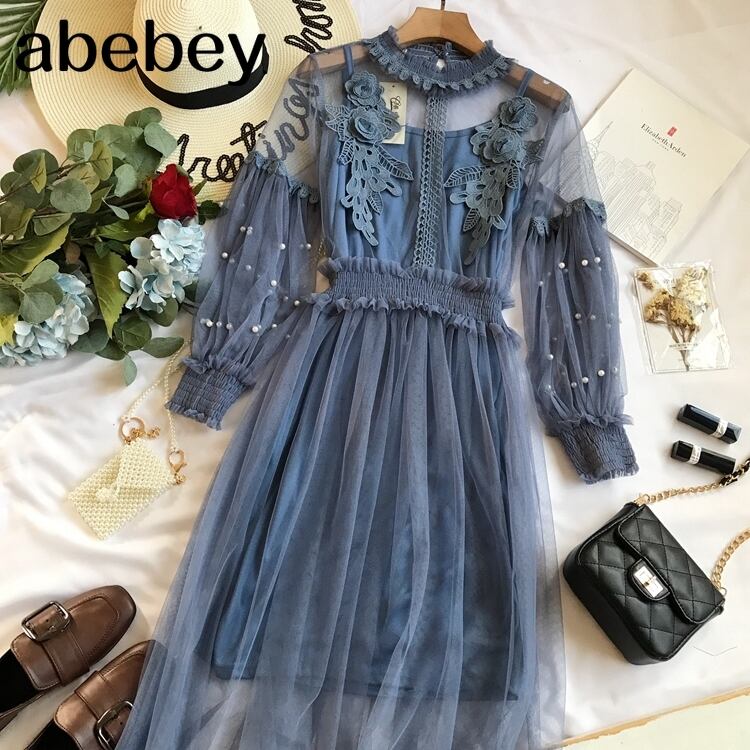 女性春メッシュビーズロングドレス三次元フローラルレースパーティーフェアリードレススーツvestidodefiesta スプリング 春物 花柄 Abe837376519