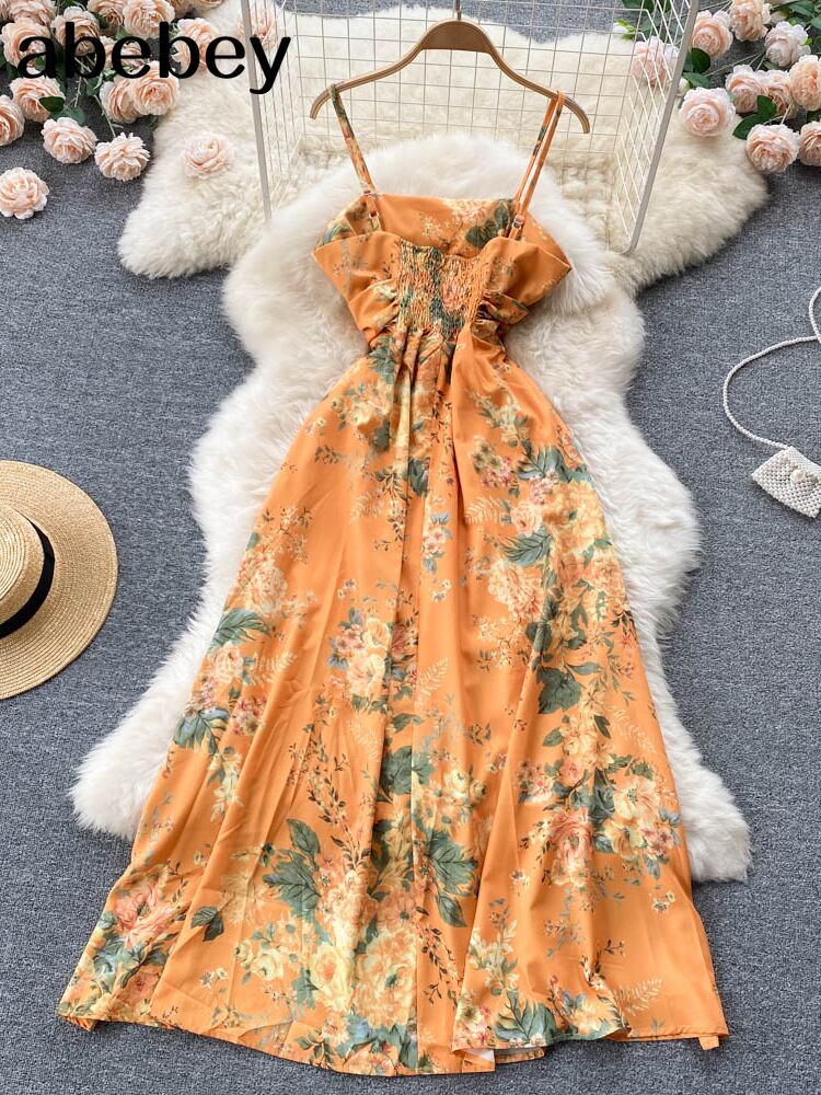 女性サマーロングビーチドレス2022ジッパーサッシシフォン気質Aラインスリムプリントドレス 夏物 Abe34963213370
