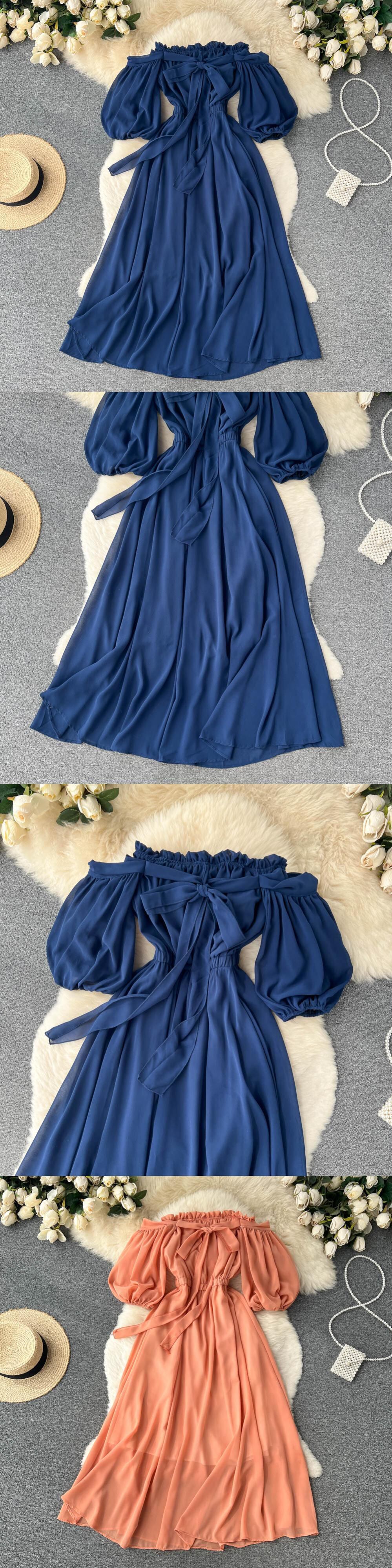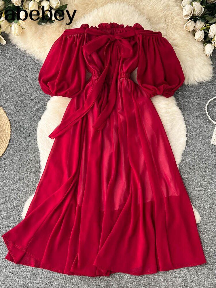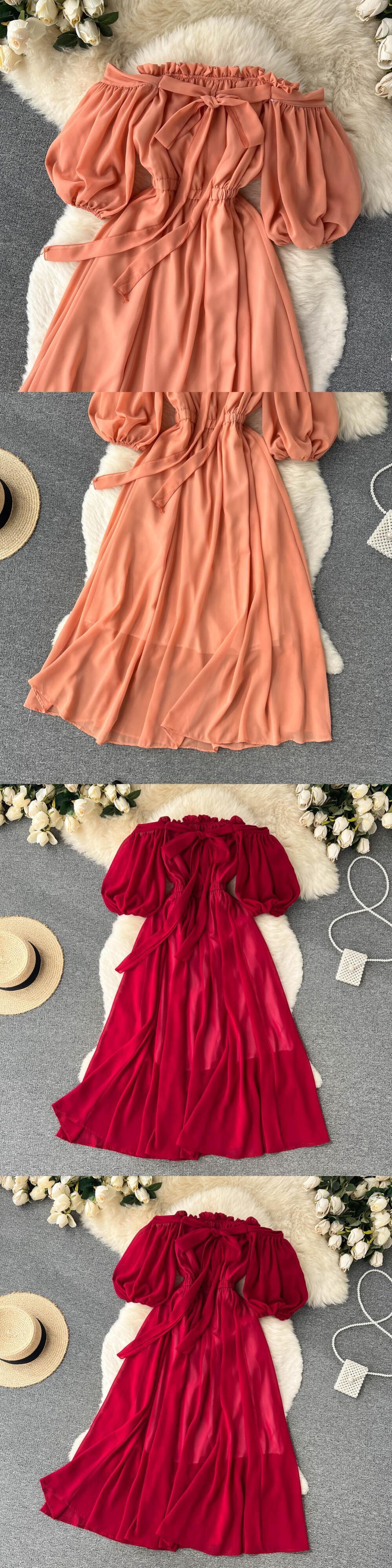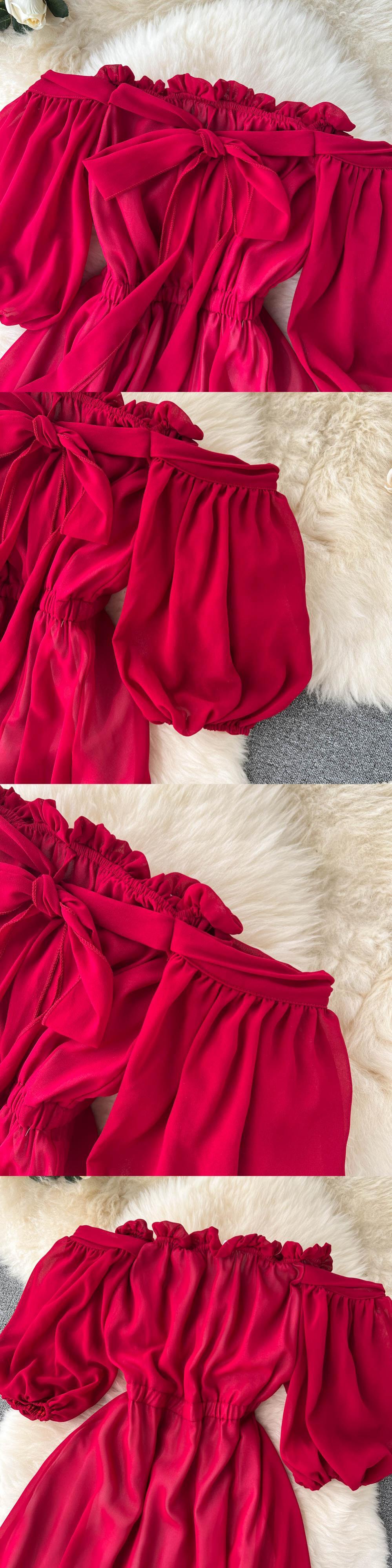 2022ショートパフスリーブスラッシュネックシフォンプリーツセクシーミニドレス秋冬女性ソリッドパーティーストリートウェア衣装 オータム 秋物 ウィンター 冬物 ソリッドカラー Abe4082365964