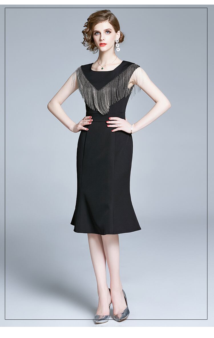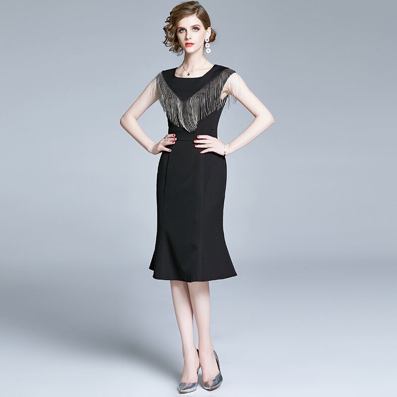 2020サマーOネックビーズテルマーメイドミディドレスラグジュアリーノースリーブドレスセクシーローブパーティードレス 夏物 Rhc57490262889