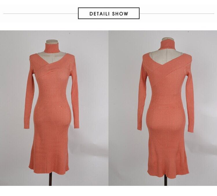 2021VネックスプリングドレスレディースニットペンシルドレススリムシンプルボディコンワークオフィスVestidos 春物 会社 学校 通勤や通学にも Rhc53640804077