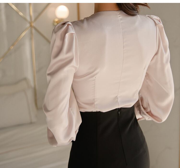 女性ツーピースセットセクシーなVネック長袖シャツとウエストペンシルスカートセットOLオフィスレディスーツS-XL ロング 会社 学校 通勤や通学にも Rhc54393315854