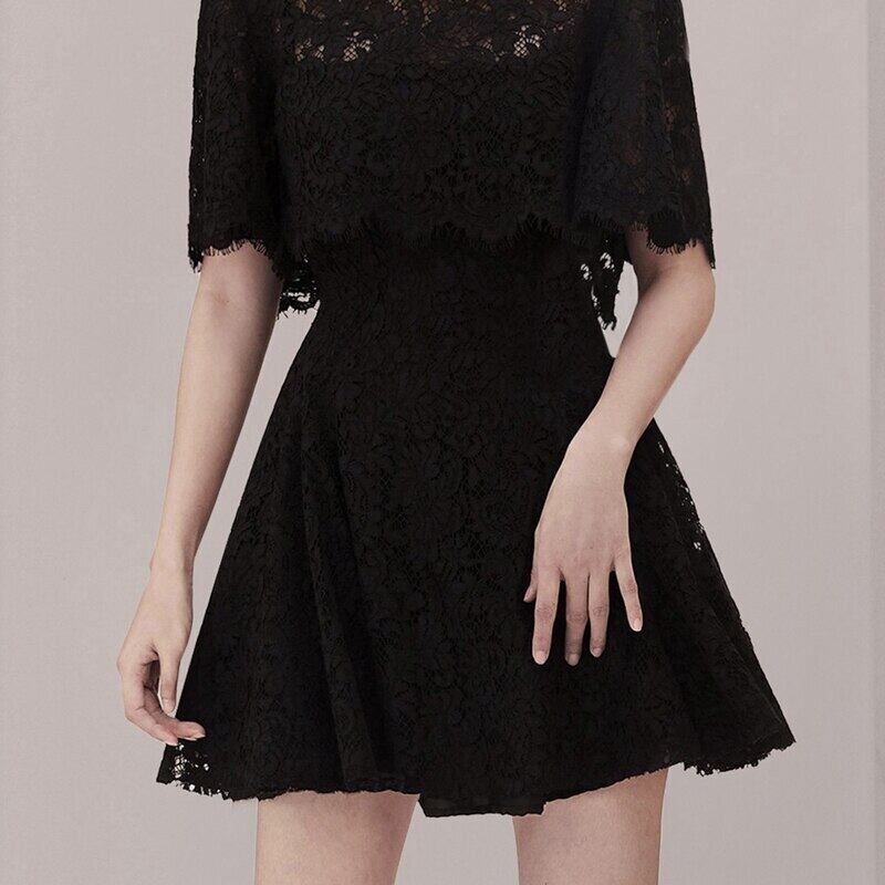Runway 2020 Summer Women O Neck Short Top + Sling Lace A-line Slim Mini Dress 2 Piece Set Party Vestidos ショート ミニ レース サマー 夏物 Oネック Aライン スリム Rhc71141806443