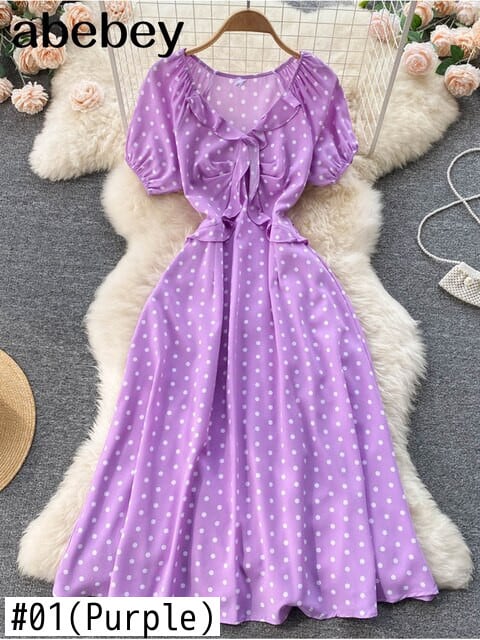 2022年エレガントでセクシーなドレスの女性夏のVネック水玉ミディドレスvestidosdefiesta服パーティーロングドレス サマー 夏物 Abe30712749832