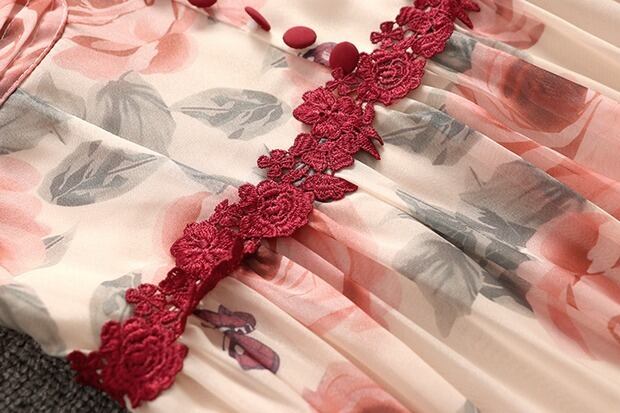 花柄ロングドレス女性夏休みセクシービーチシフォンドレスドレスレースアップドレス自由奔放に生きるVestidos サマー 夏物 Rhc96153557832