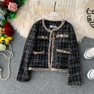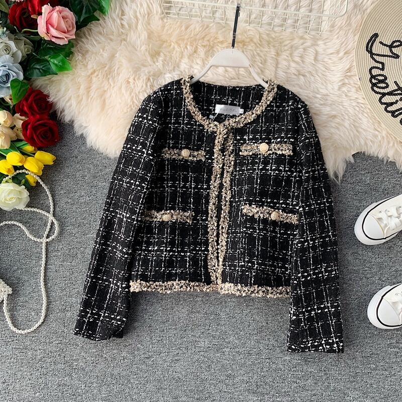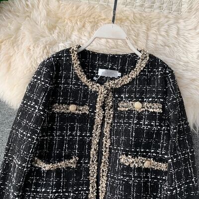 ヴィンテージ冬/秋ジャケットペラルルレックスTelストリートウェアフランススタイルルースシックジャケットツイードトップラペルHand-tel オータム 秋物 ウィンター 冬物 ビンテージ Abe25913767232