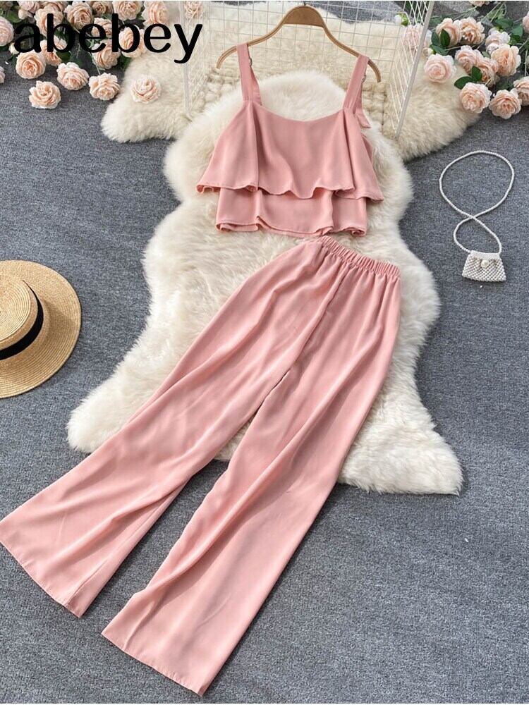 ヴィンテージシックな女性ソリッド衣装ストラップノースリーブトップスボヘミアンスーツ巾着パンツ2ピースレーヨン2022自由奔放に生きるセット ソリッドカラー ビンテージ Abe40128425523