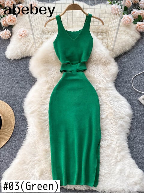 女性2022ホワイトペンシルドレスタンクスリーブVネックボディコンセクシーなVestidosKpopヴィンテージ伸縮性ニットサマーミディドレス エラスティック 夏物 ビンテージ Abe57665723601