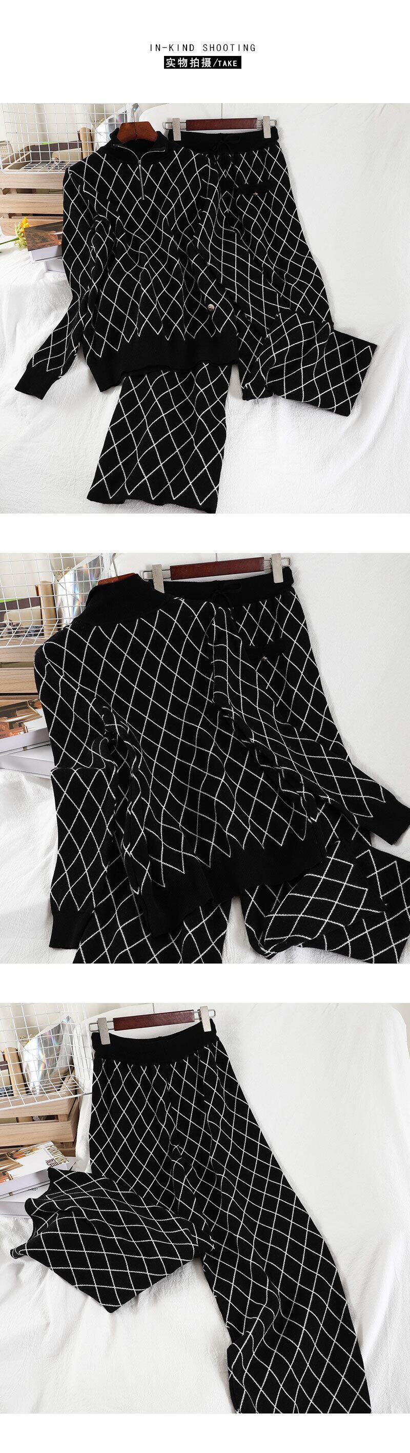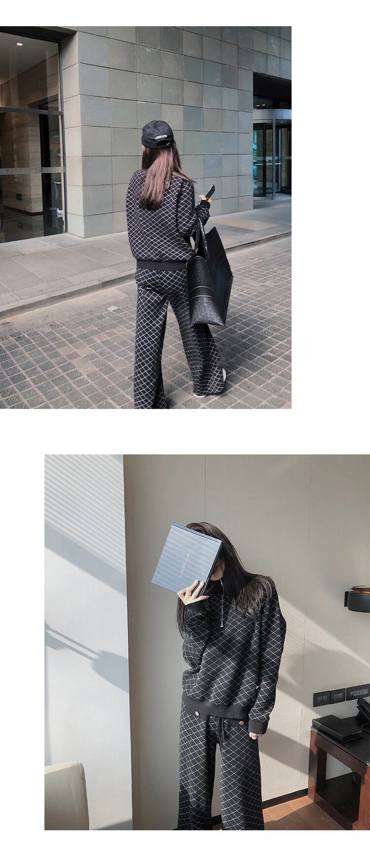 女性秋冬スタイルルーズハーフレングスネックフライドストリートセーターワイドレッグパンツツーピースセット女性 オータム 秋物 ウィンター 冬物 ワイドパンツ Rhc88262271502