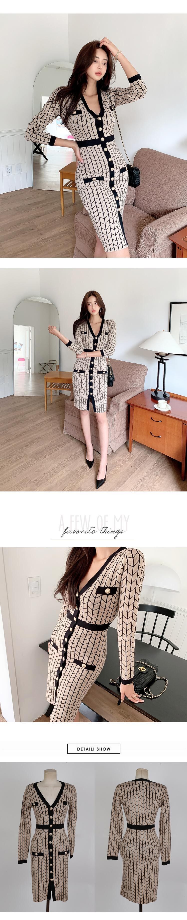 シングルブレストペンシルドレス女性シンプルスリム伸縮性ニットシースボディコンドレスオフィスウェアVestidos エラスティック 会社 学校 通勤や通学にも Rhc17091904902