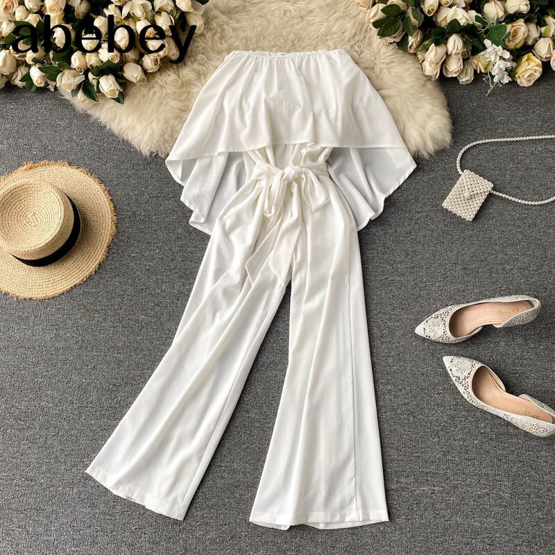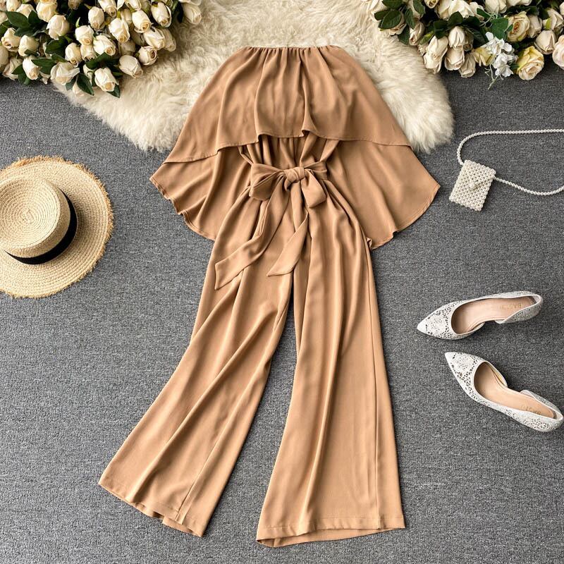ジャンプスーツの女性2022年春秋オフィスレディフリルルーズソリッドフルレングスロンパースノースリーブジャンプスーツ ラッフル スプリング 春物 オータム 秋物 ソリッドカラー 会社 学校 通勤や通学にも Abe4439312327