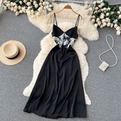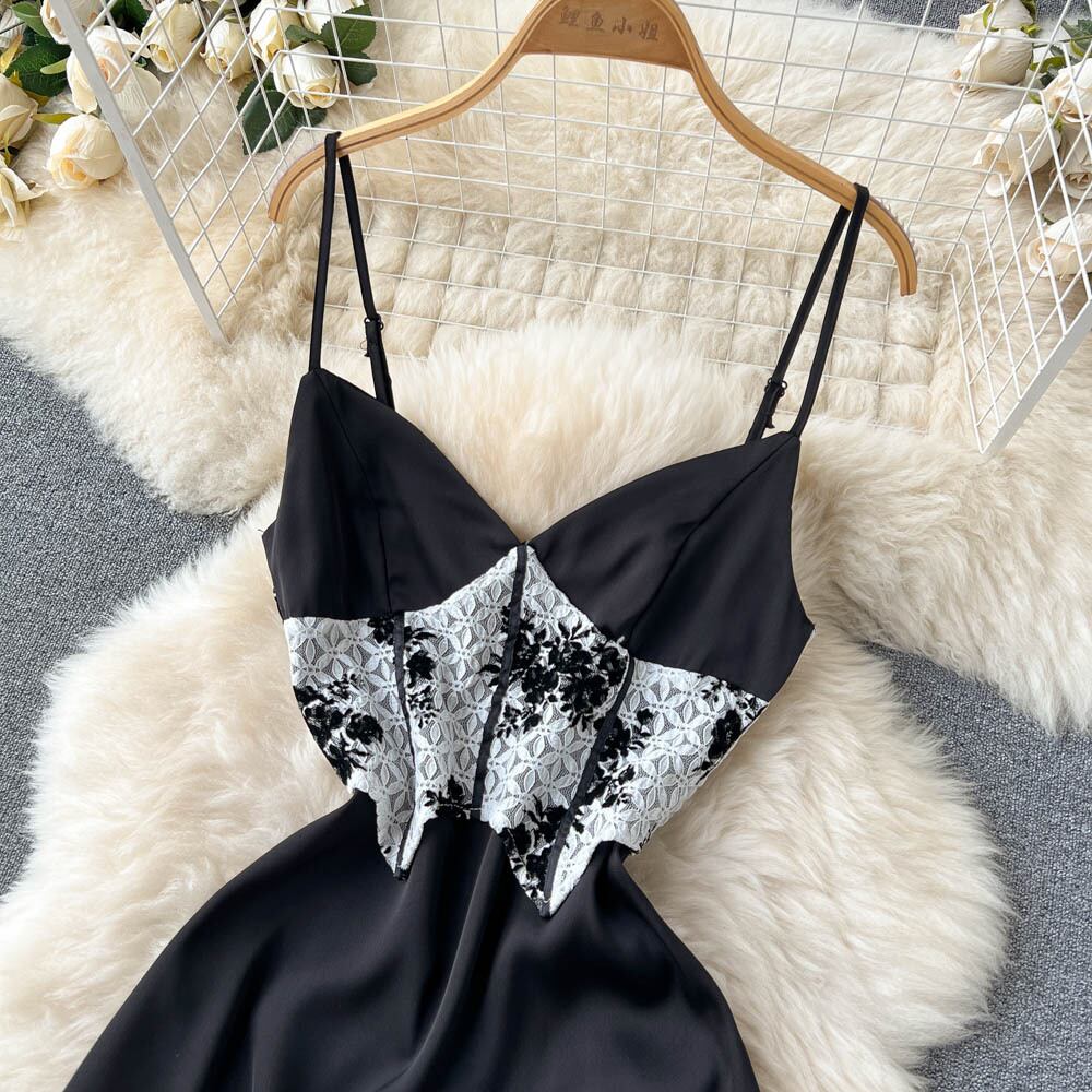 パットワークレースアップバックレスセクシーマキシドレス夏の女性弾性黒ロングホリデードレスサンドレスVestidoシフォン ブラック エラスティック 伸縮 サマー 夏物 Abe92719409458