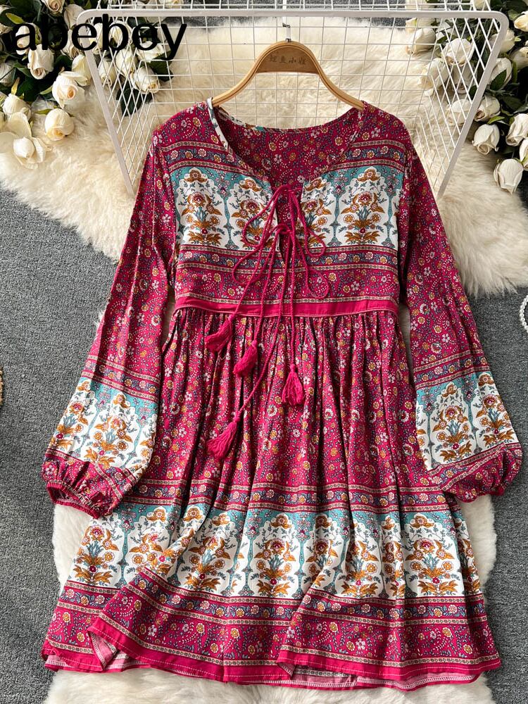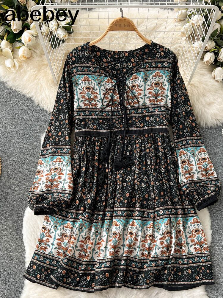 刺繍入り女性サマードレス2022Y2KOネックランタンスリーブスリムアジャスタブルウエストAラインショートドレス 夏物 Abe90046762482