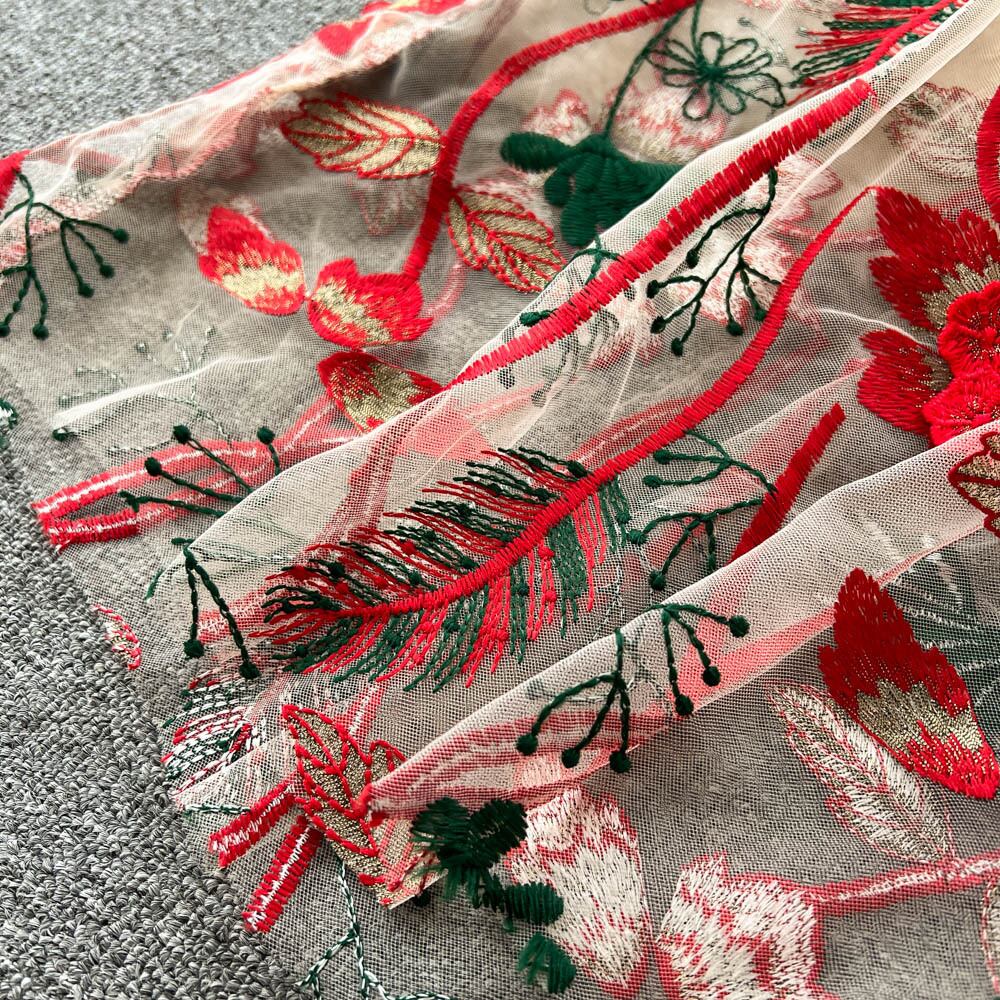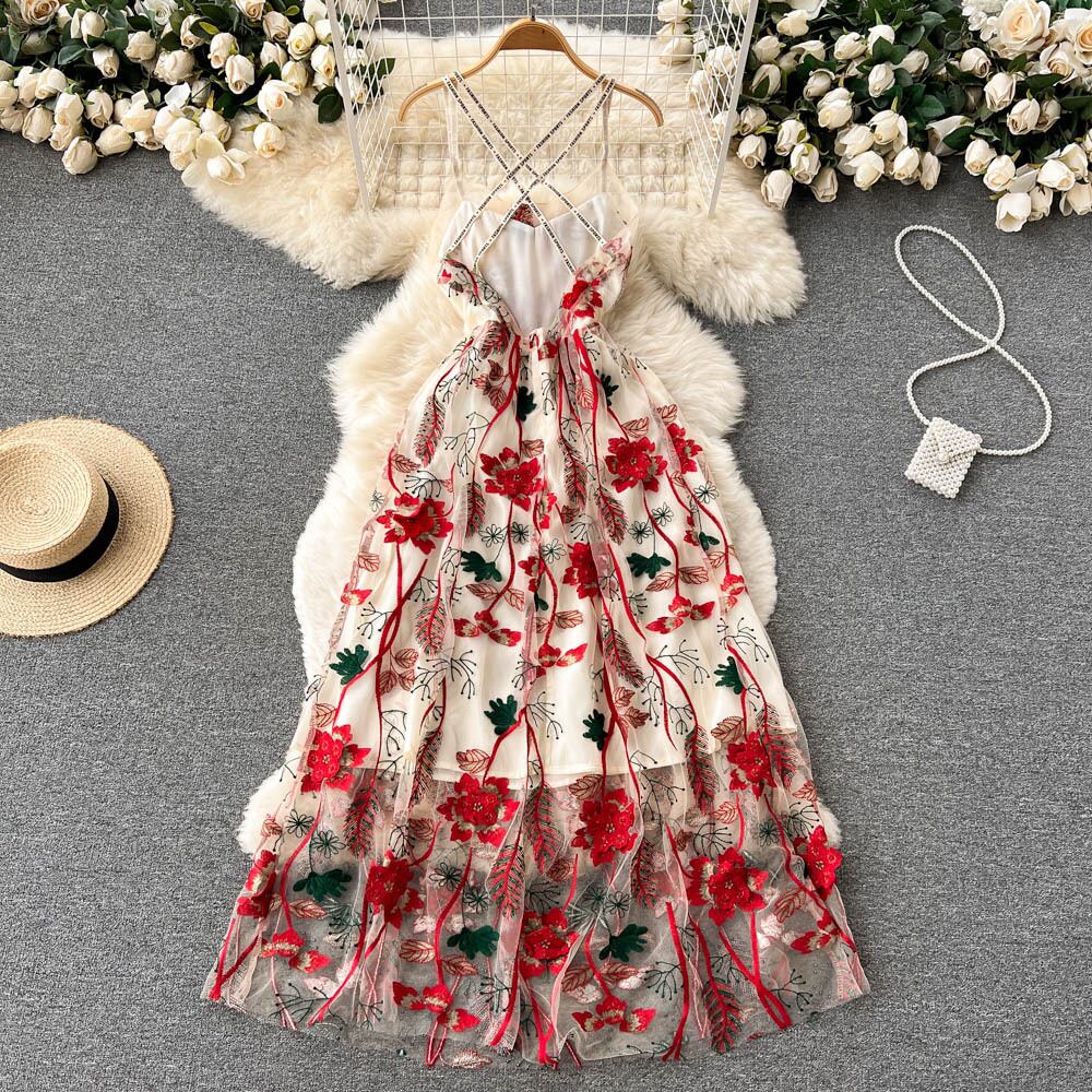 刺繡Sleevelssマキシサマードレス女性セクシーな背中の開いたビーチ赤い自由奔放に生きるローブ2022レースアップサンドレス花柄ドレス レッド 刺繍 夏物 Abe21099956459