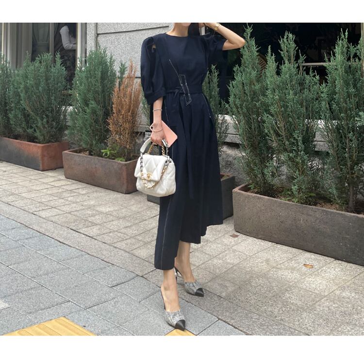 サマースタイル気質ロングドレス半袖ラウンドネックルーズベルトビッグスイングドレス ショート ハーフスリーブ 夏物 ハーネス Oネック Rhc565602689