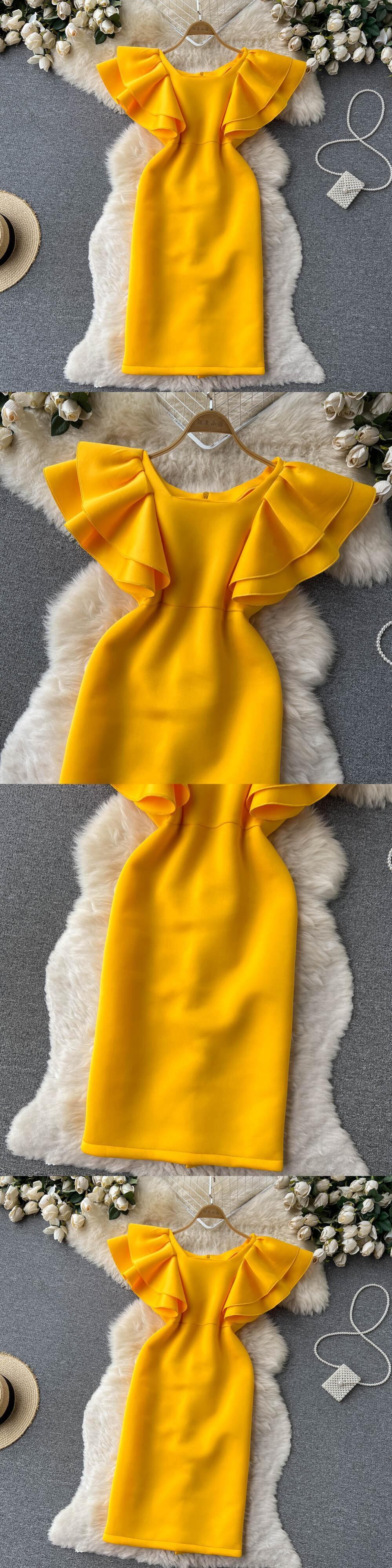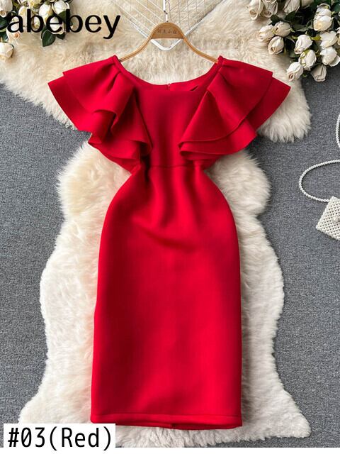 セクシーなVネックスリムオフィスレディドレスフリル半袖ボディコン膝丈ワンピース女性2022年夏の女性ワークドレス ショート ハーフスリーブ サマー 夏物 会社 学校 通勤や通学にも Abe10489072637